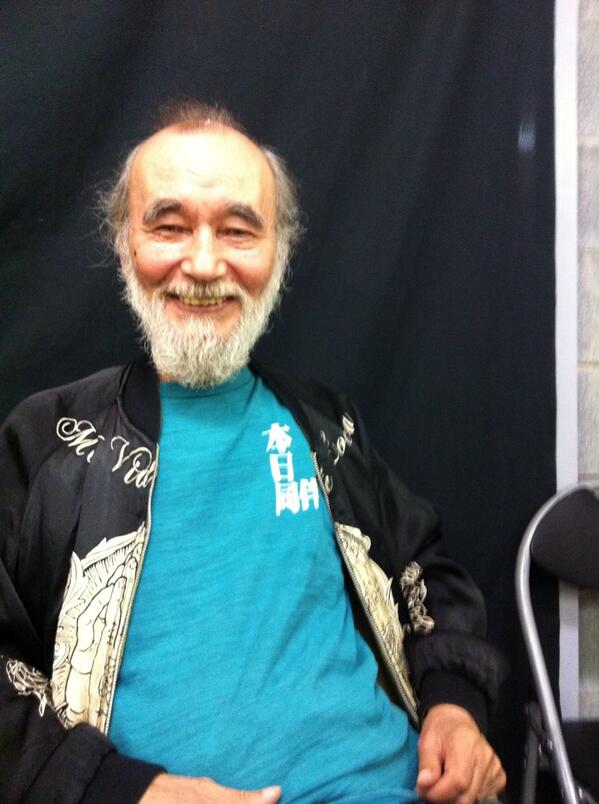 ステッキを手に、攻めたスタイルのミッキー・カーチスさん。